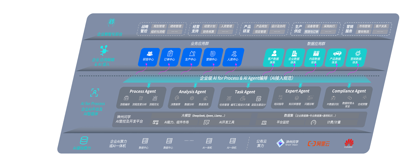 端到端的一站式AI工作空间深度融合了从企业战略规划到日常经营的全流程业务板块,,,,定向解决车企内部领域多、、、、部门多、、链条长、、、、场景碎片化等难题,,支持车企快速构建以AI为核心的生产力写作体系,,实现任务执行与AI能力的无缝集成与交互